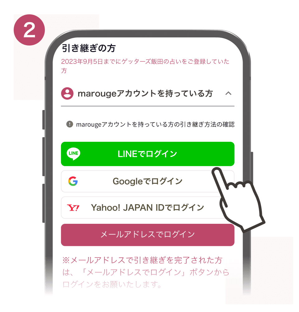 marougeアカウントを持っている場合のアカウント引き継ぎ方法